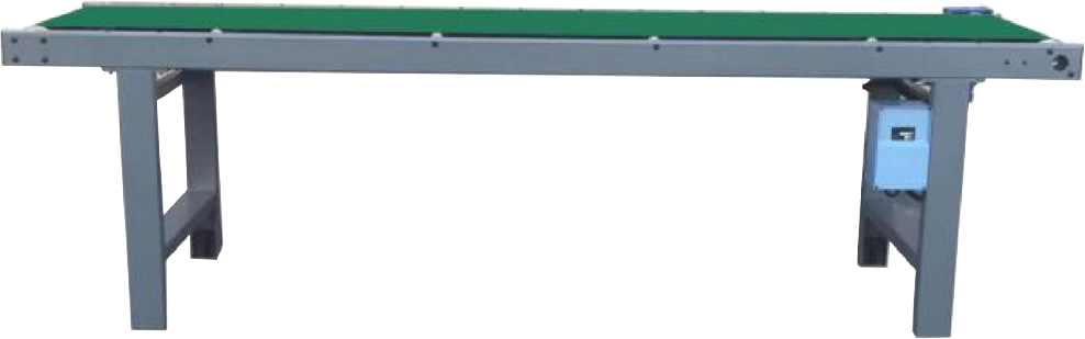 - The main frame is assembled from 50 x 100 specifications of high strength industrial square tubes and a welded bottom frame of square tubes. Conveyor belt adopts flat series with a thickness of 2 mm. Adopts aluminum alloy shell NRV series reduction electric unit, power 0.4 kW, and frequency converter to adjust the speed