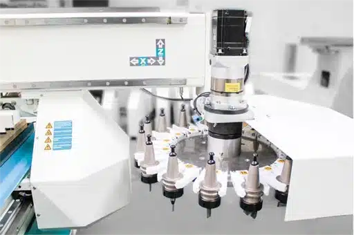 Servo tool changer with 12/16 slots available upon request. Tool changing is faster and more accurate. A more efficient option for those who work with a multitude of different tools, such as the cabinet door manufacturing.