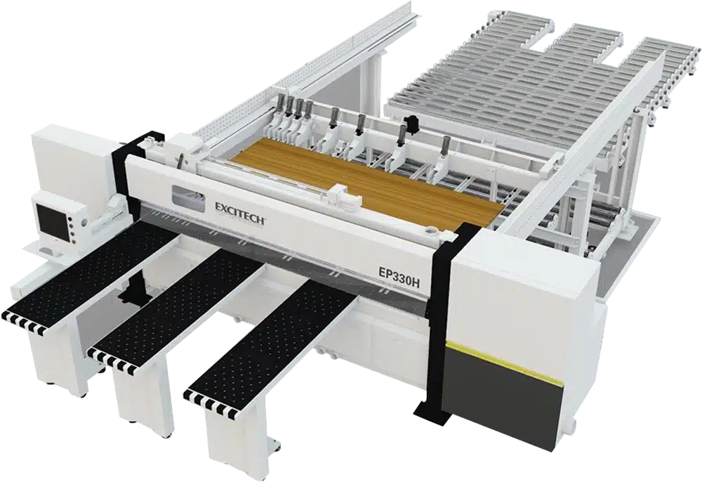 Panel saw with rear feeding system greatly reduces cycle time, resulting in higher efficiency as well as output. The fully automatic lifting system and infeed clamps work together to eliminate the need for operator intervention.