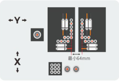 | Upper horizontal drill set | X: (2 + 2) x 2 Y: 2 x 2 |