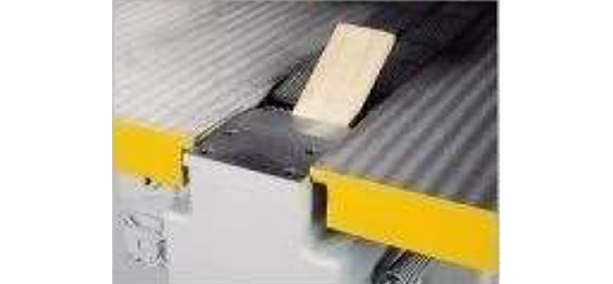 Avoids possible damage to the machine by preventing short work pieces and defective lumber from accidentally sliding between the chain and the table when they are feed to the end.