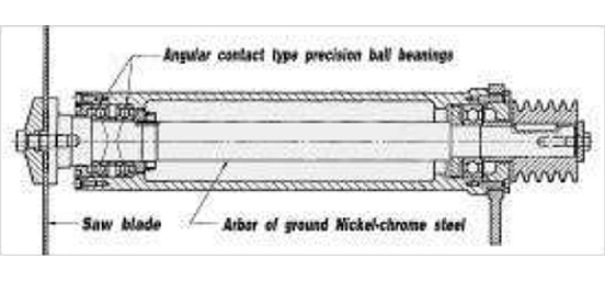 Made of nickel chrome steel, large in diameter, accurately ground and dynamically balanced. It runs on precision angular contact type ball bearings which eliminate any radial run out and axial thrust.