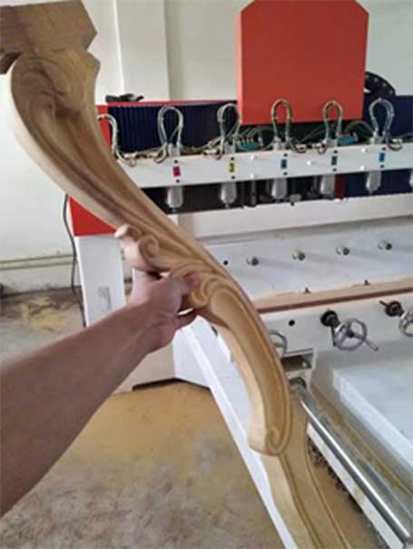 It can realize multi-function machining such as end milling, engraving, opening, edge line, and punching. Applicable to all furnitures like European and American style, simple European, modern style, light luxury style, new Chinese solid wood furniture. It can process dining tables and chairs, shaped legs, and special-shaped accessories on solid wood furniture.